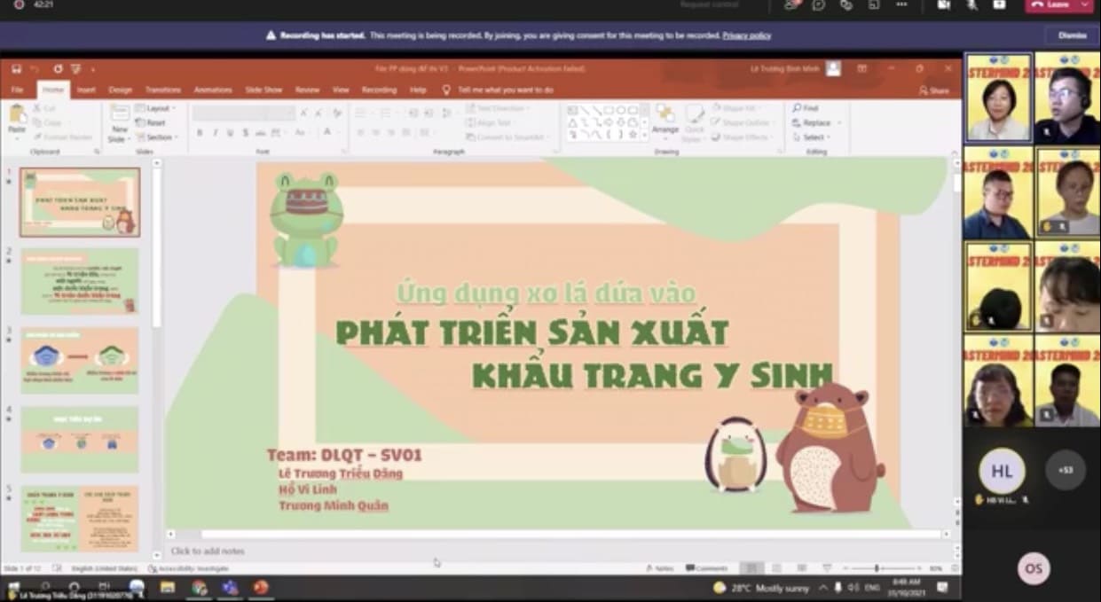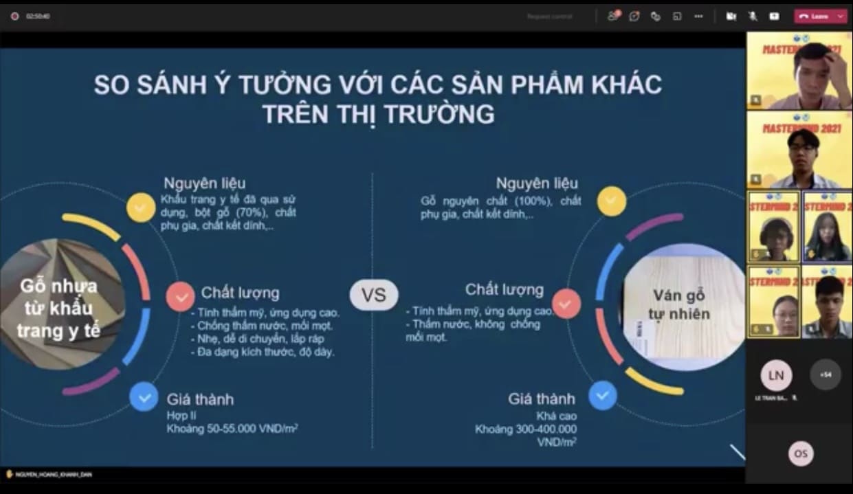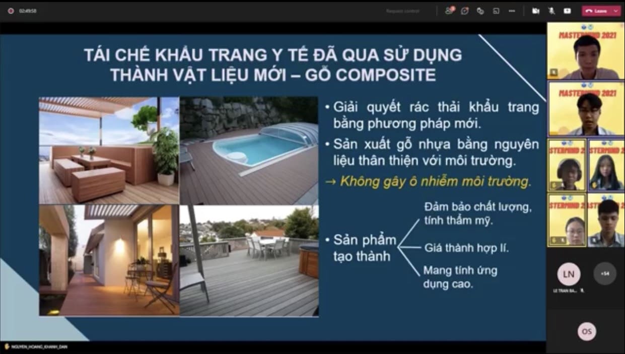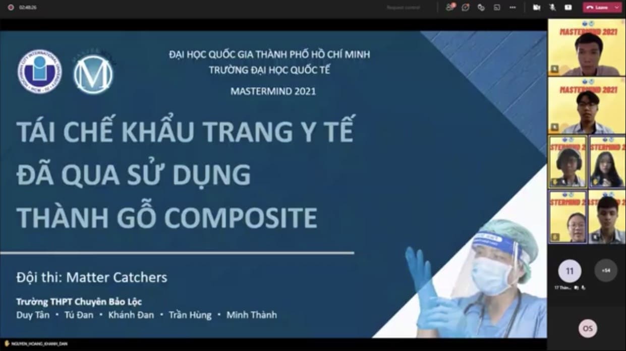 Sáng ngày 31/10/2021, bằng hình thức online, cuộc thi chung kết MASTERMIND năm 2021 do Trường Đại Học Quốc Tế - ĐHQG thành phố Hồ Chí Minh tổ chức đã chia làm bảng Sinh viên (4 đội) và bảng Học sinh (4 đội). Nhóm học sinh Trường THPT chuyên Bảo Lộc gồm 4 thành viên lớp 10 chuyên Hóa (Nguyễn Hoàng Khánh Đan; Tống Văn Minh Thành; Lê Trần Hùng; Lê Duy Tân và Thân Tú Đan) với đề tài “ TÁI CHẾ KHẨU TRANG Y TẾ ĐÃ QUA SỬ DỤNG THÀNH GỖ NHỰA” đã đạt giải ba bảng học sinh. Qua cuộc thi các em biết áp dụng các kiến thức Hóa học vào thực tiễn, nâng cao ý thức bảo vệ môi trường và sử dụng các nguồn nguyên liệu tái chế thiết thực, cũng như học tập được nhiều kỹ năng khác từ các chuyên gia của trường Đại Học Quốc Tế…