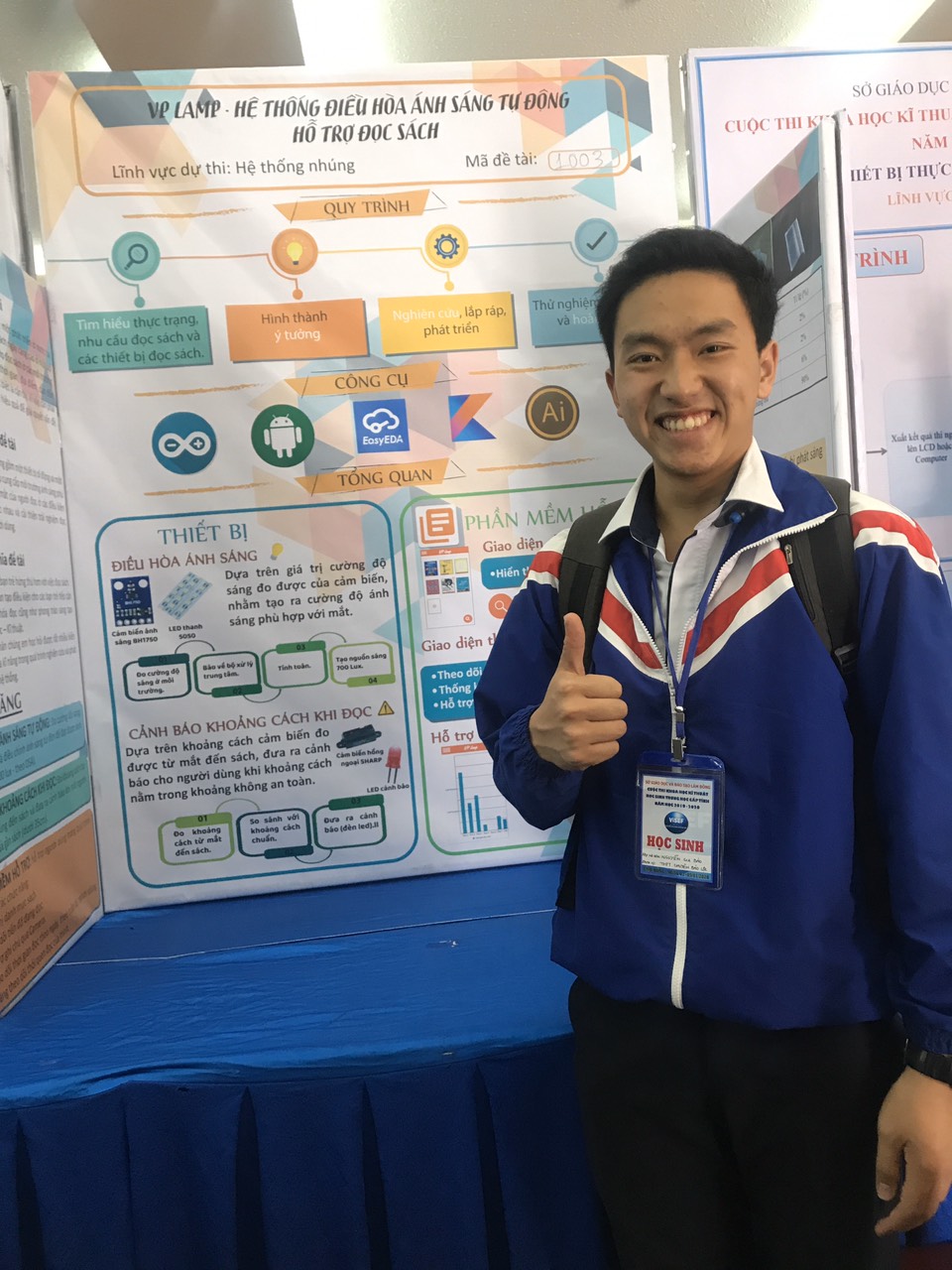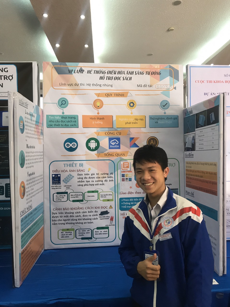 1. VPLamp - Hệ thống điều hòa ánh sáng tự động hỗ trợ đọc sách (Tác giả: Nguyễn Gia Bảo -Lớp 12 Anh; Lê Doãn Việt Trường - 12 Anh)