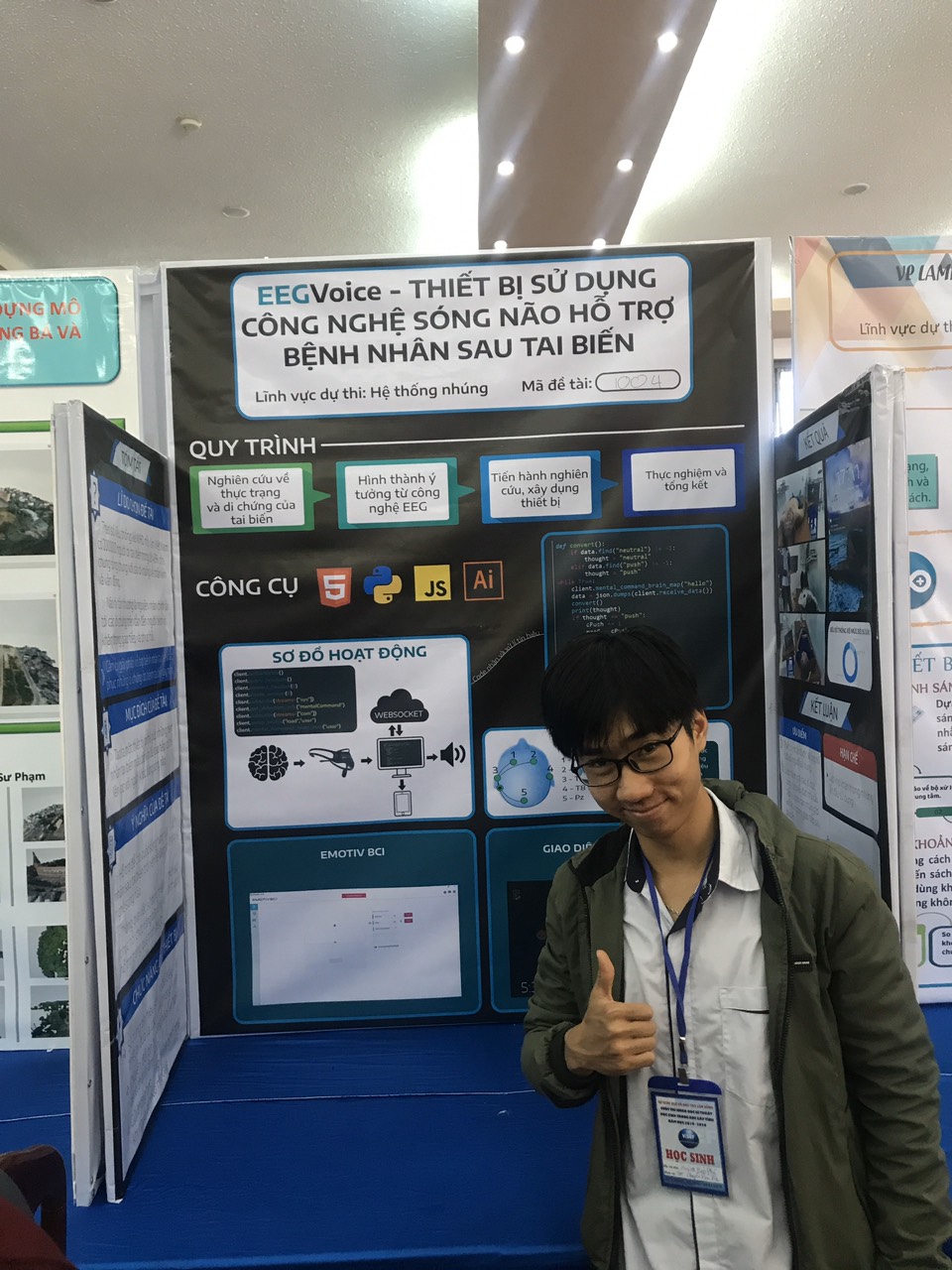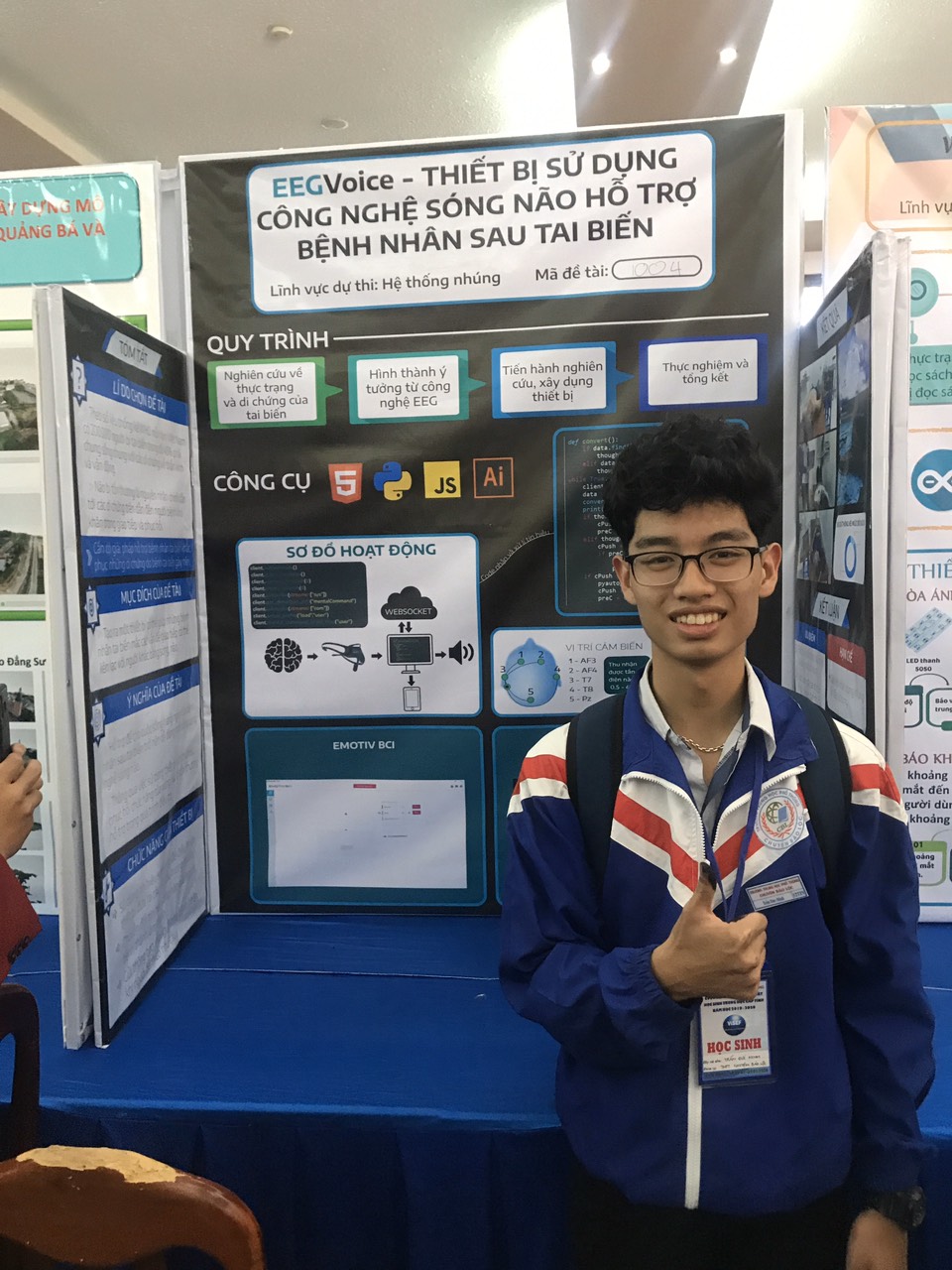 2. EEGVoice - Thiết bị sử dụng công nghệ sóng não hỗ trợ bệnh nhân sau tai biến (tác giả: Trần Đức Minh – Lớp 12 Tin; Huỳnh Bảo Phúc – Lớp 12 Anh);