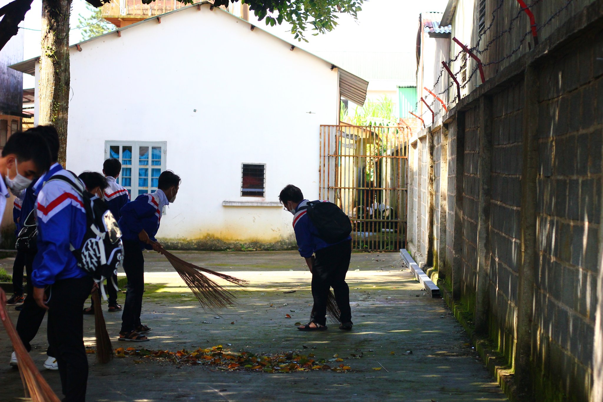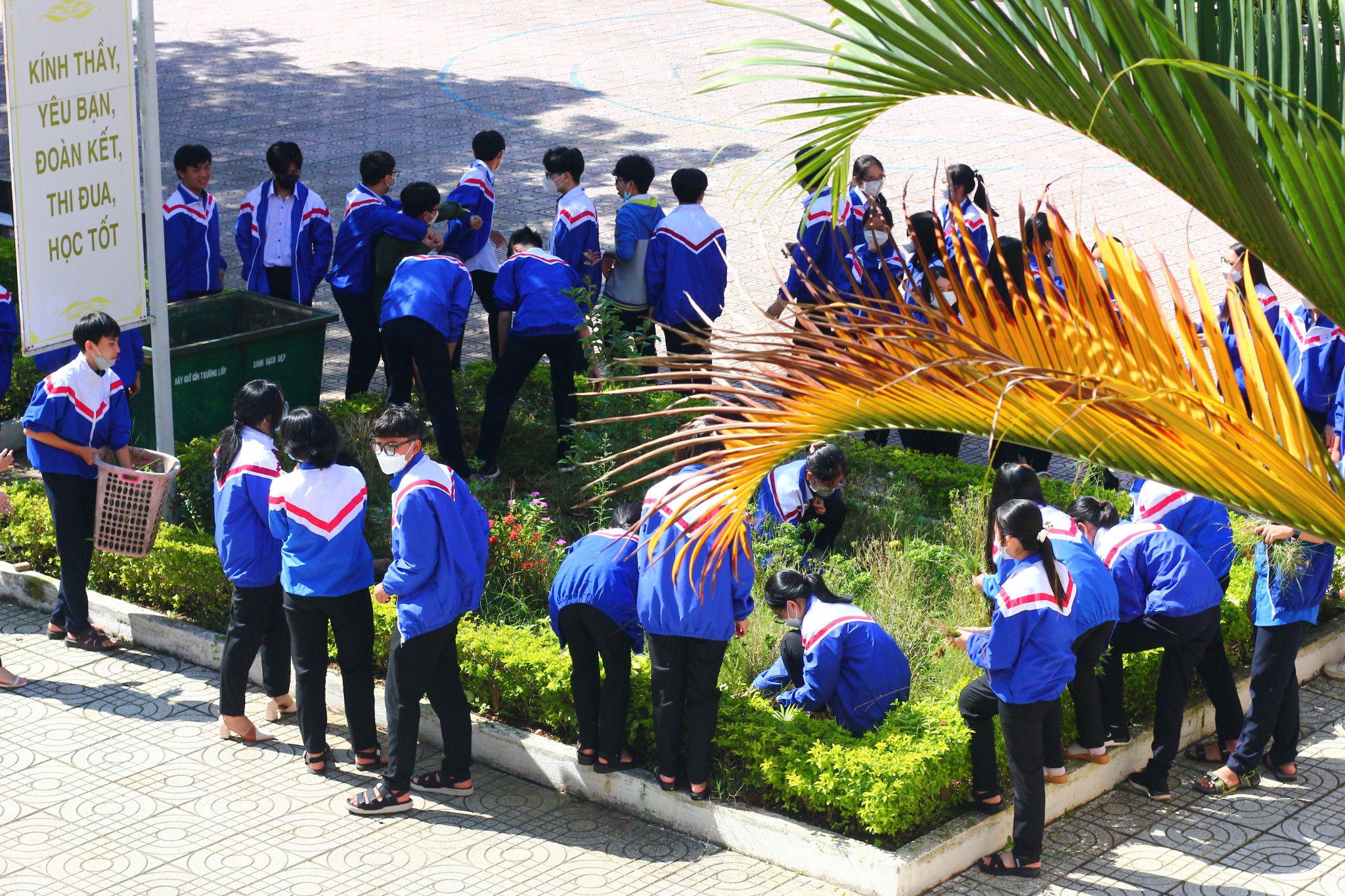 Đoàn viên tham gia làm sạch cảnh quan nhà trường