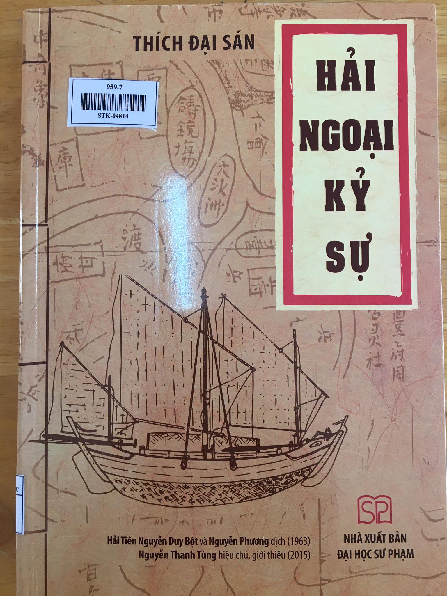 3. Hải ngoại kỉ sự / Thích Đại Sán. – H. : Đại học sư phạm ; Công ty in và truyền thông Hợp Phát, 2016. -496tr. ; 24cm. Tác phẩm viết về Quốc Vương (chúa Nguyễn) An Nam và hoạt động của triều đình An Nam tại Hoàng Sa và Trường Sa. Trong đó, ông đã kể lại kinh nghiệm hải trình qua vùng Hoàng Sa tức Vạn lý Trường Sa và ước lượng khoảng cách từ vùng Hoàng Sa đến Đại Việt khoảng 7 ngày đường. Thích Đại Sán viết: “Thời Quốc vương trước, ở đây hàng năm sai thuyền đi đánh cá đi dọc theo bãi cát, lượm vàng bạc, khí cụ của các thuyền bị đắm ở Hoàng Sa. Trong thời gian này chưa có tranh chấp, nên Thích Đại Sán là người Trung Quốc đã có thái độ khách quan ghi nhận chủ quyền của Đại Việt đối với Hoàng Sa. Bởi thế, “Hải ngoại kỷ sự” là một tài liệu cổ đáng tin cậy. nguyên bản in sách này hiện còn được lưu giữ tại Đông Dương Văn khố Nhật Bản và Quốc lập Trung ương đồ thư quán Trung Hoa. Thượng Hải Tiến bộ thư cục tuyển cũng đã chọn cuốn sách này vào bộ “Bút ký tiểu thuyết đại quan”. |