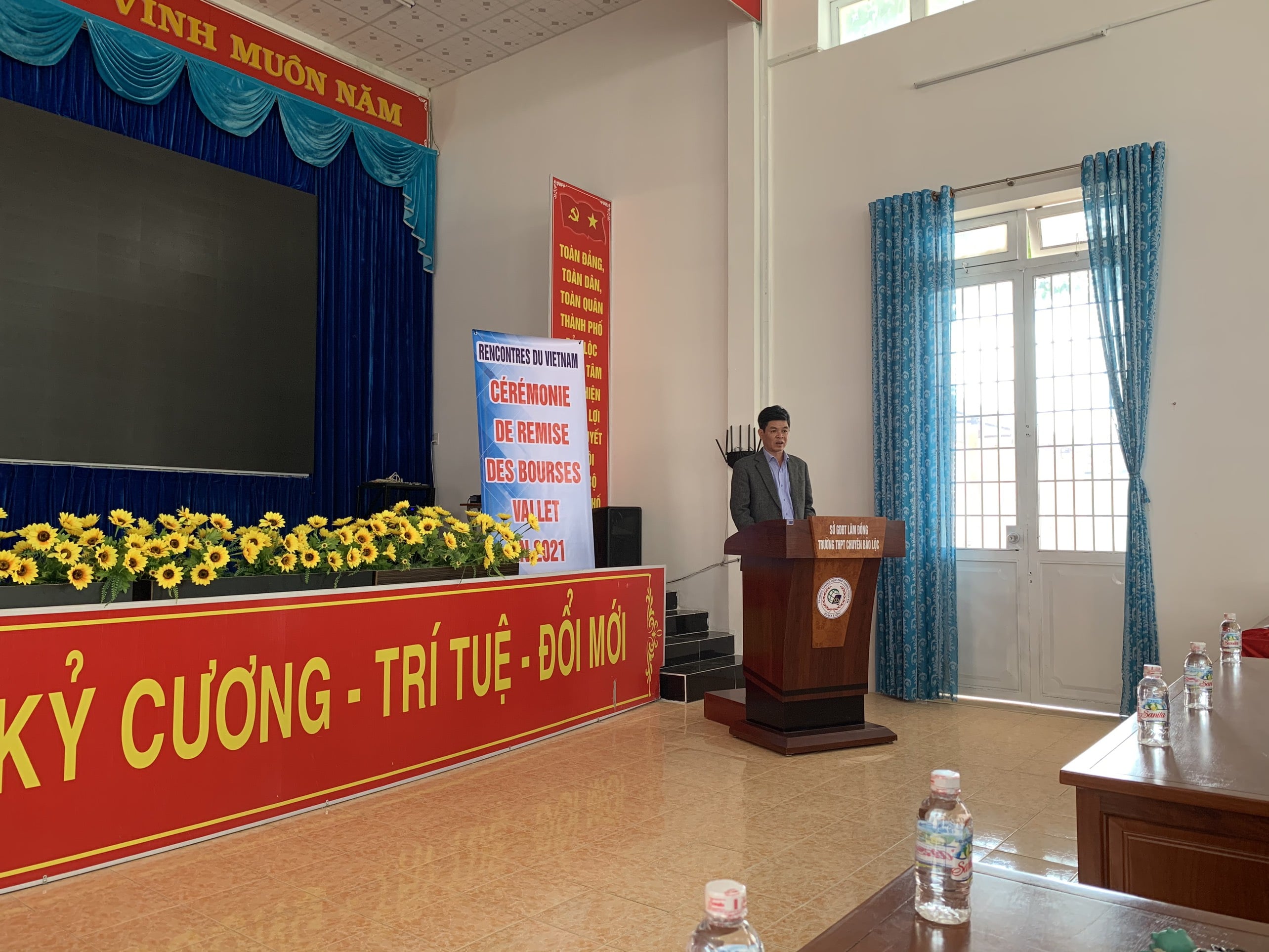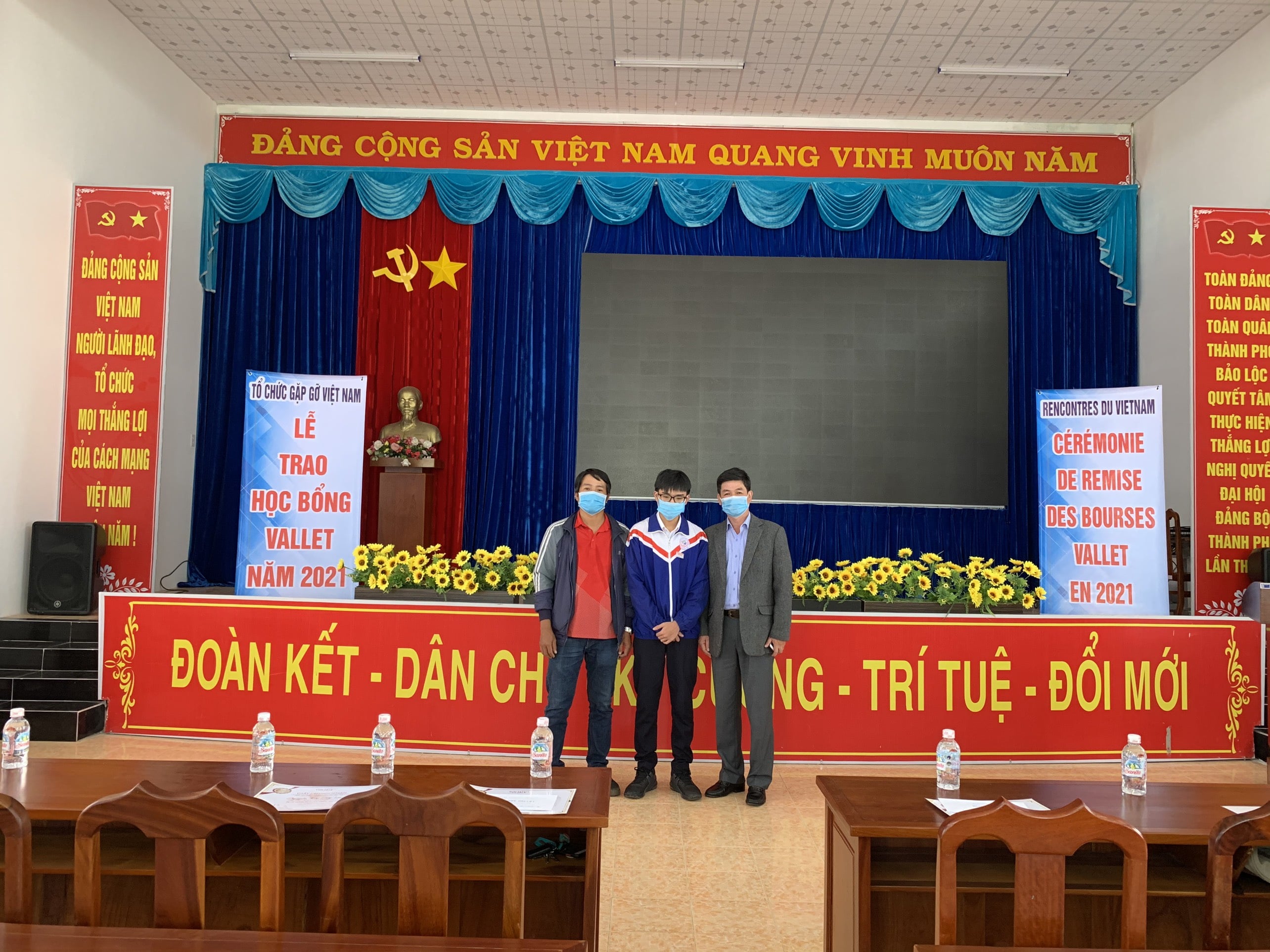 Hôm nay ngày 23/9/2021, Tổ chức gặp gỡ Việt Nam đã tiến hành trao học bổng Vallet cho 5 học sinh trường THPT Chuyên Bảo Lộc. Do dịch bệnh diễn biến phức tạp nên Ban tổ chức không tổ chức trao học bổng tập trung tại Đà lạt, vì vậy Ban tổ chức đã xuống trực tiếp các trường để trao nhằm đảm bảo công tác phòng chống dịch bệnh. Đây là 5 học sinh xuất sắc của trường đã có nhiều thành tích trong học tập và rèn luyện. Với học bổng trị giá 11.5 triệu đồng/ suất đã động viên tinh thần rất lớn cho các em học sinh khi bước vào năm học mới 2021-2022, cũng là động lực để các em tiếp tục phấn đấu đạt nhiều thành tích hơn nữa trong học tập và rèn luyện.