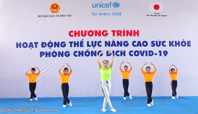 Trước diễn biến phức tạp của dịch COVID-19, Bộ Giáo dục và Đào tạo phối hợp cùng Quỹ Nhi đồng Liên hợp Quốc Việt Nam (UNICEF Việt Nam) xây dựng các bài tập thể dục (dưới dạng video) và tài liệu hướng dẫn tập luyện để nâng cao sức khoẻ cho học sinh phòng, chống dịch COVID-19