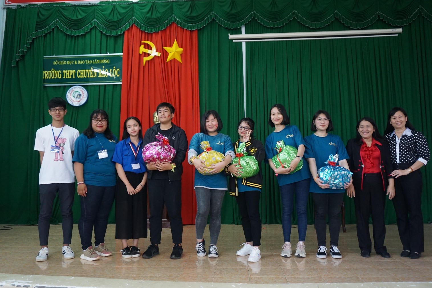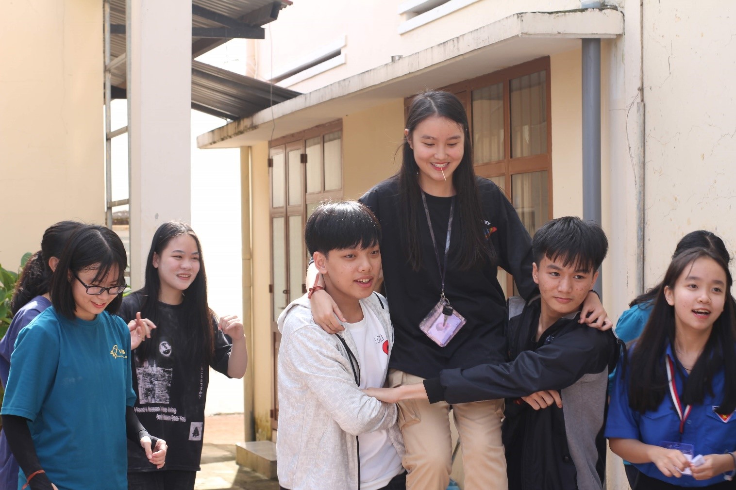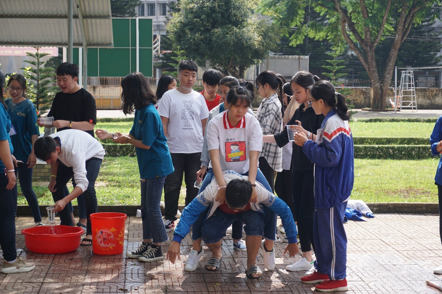 - Chặng 4 : (Sân chào cờ) các đội chơi chia thành từng cặp. Tất cả các cặp xếp thành một hàng tại vạch xuất phát. 01 thành viên của đội có nhiệm vụ cõng thành viên còn lại di chuyển bằng cách nhanh nhất đến đích để người được cõng lấy ly nước đặt lên đầu, sau đó chạy nhanh về vị trí xuất phát. Sau thời gian 3 phút, đội nào hoàn thành mức nước quy định sẽ nhận mật thư đi tiếp.
