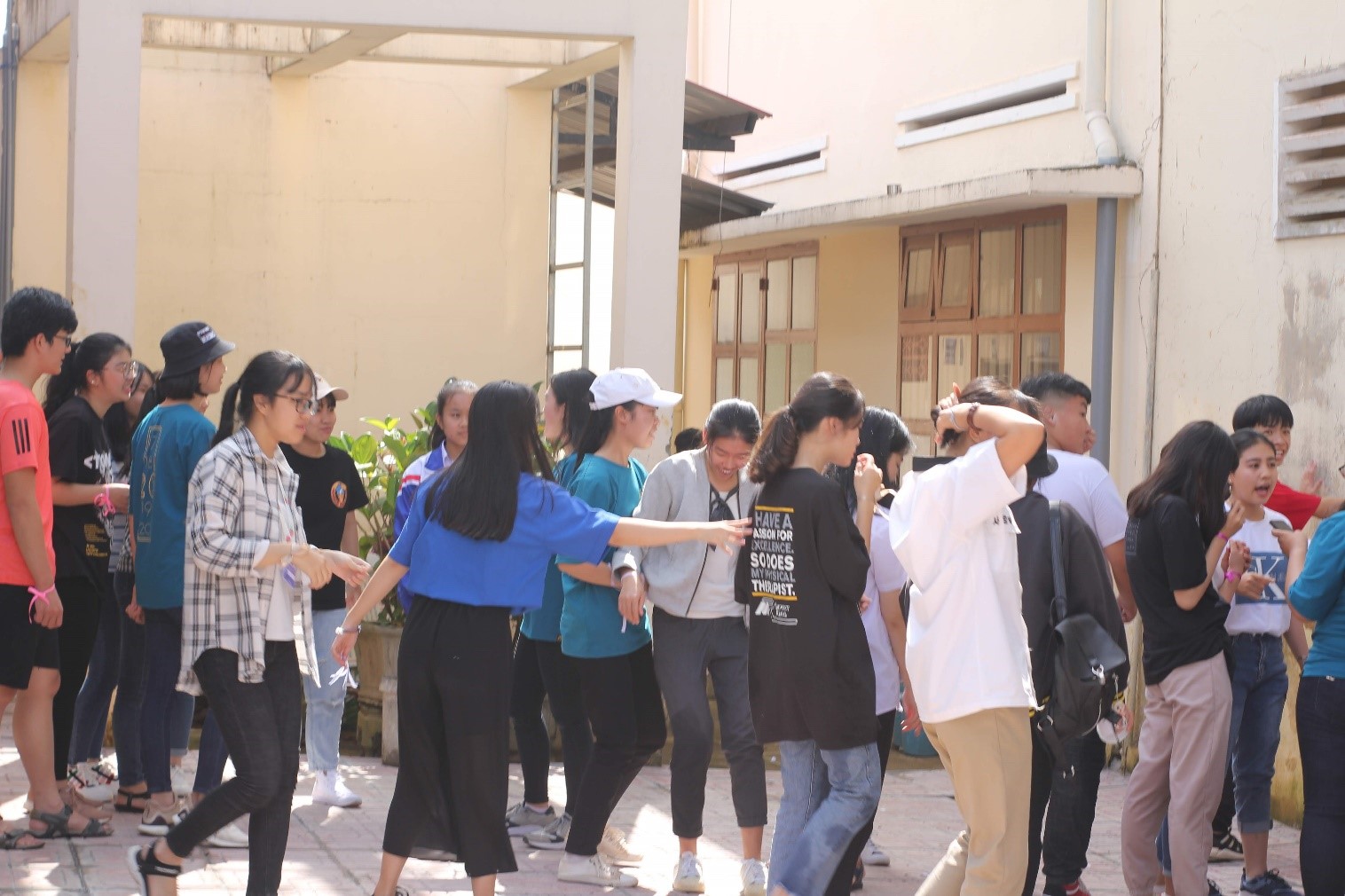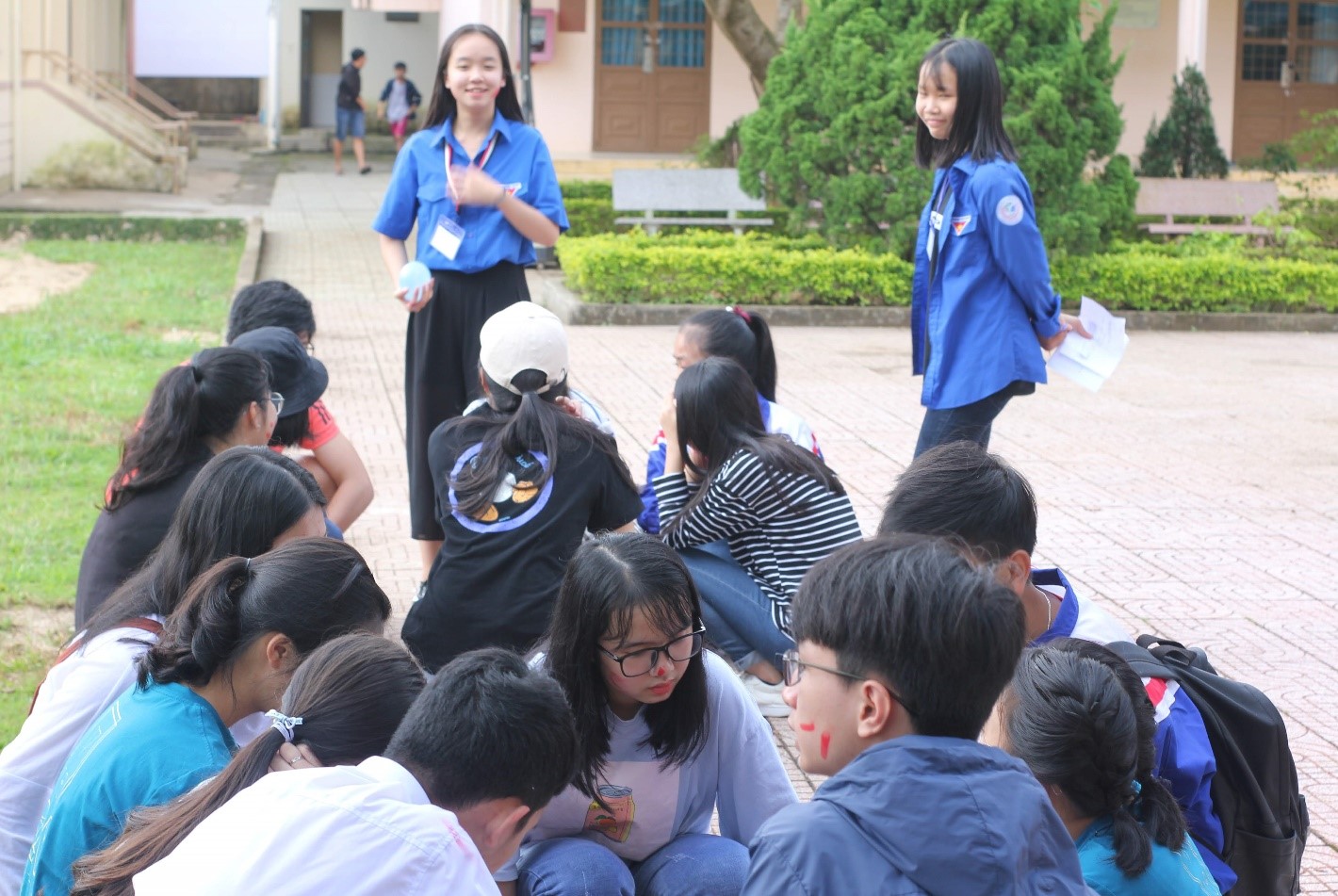 + Chặng 5: (Tại sân sau khu vực lớp học) các nhóm trưởng sẽ bị bịt mắt, các thành viên còn lại có nhiệm vụ nối đuôi nhau thành con rắn đi sau và hướng dẫn cho đội trưởng của mình di chuyển vượt qua chướng ngại vật. Hoàn thành sẽ nhận mật thư đi tiếp. Sau khi hoàn thành các chặng các đội chơi tập kết tại hội trường và tìm ra từ khóa của trò chơi.