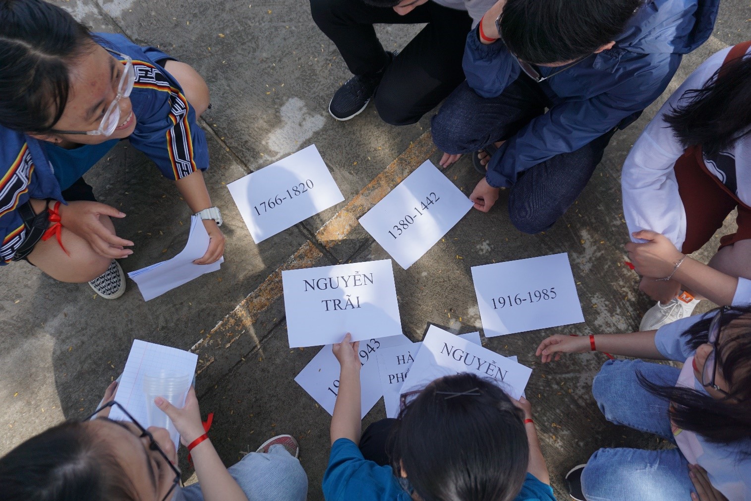 - Chặng 2: (Sân thể dục) tại đây, các đội chơi sẽ sắp xếp thứ tự của các tác giả, tác phẩm sao cho hợp lí. Nếu hoàn thành các đội sẽ nhận mật thư đi tiếp.