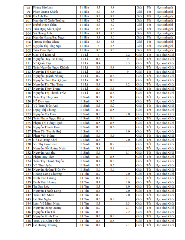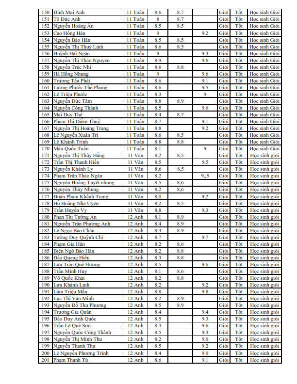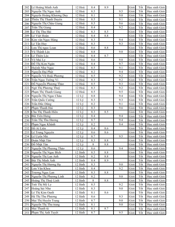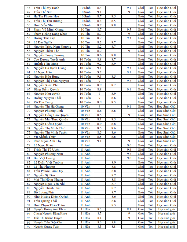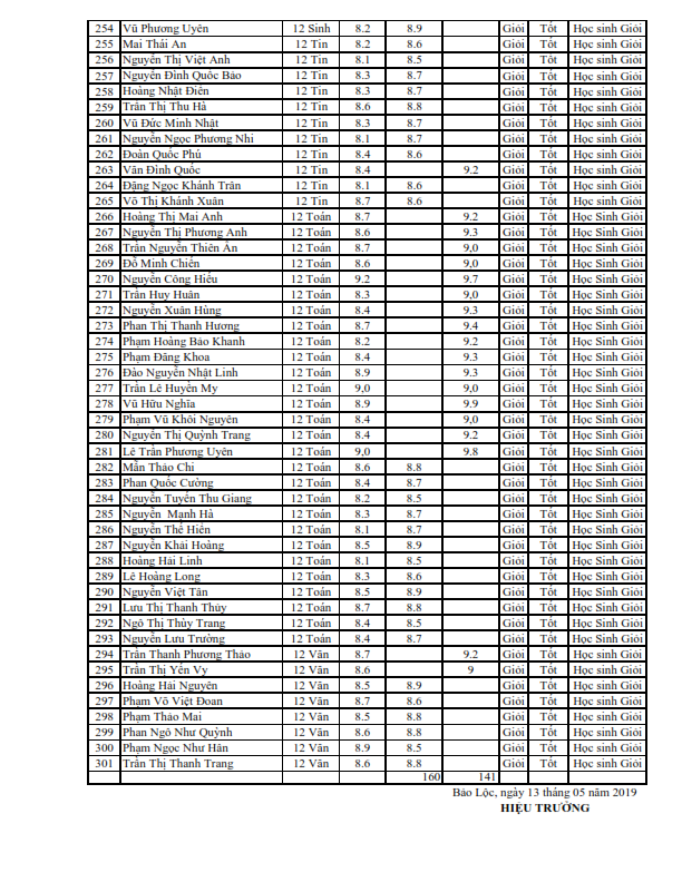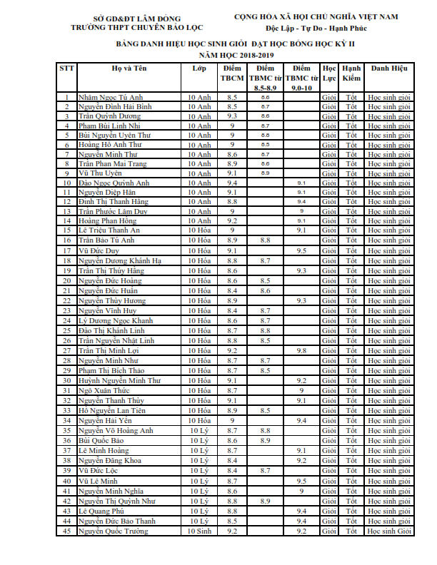 Danh sách học sinh nhận học bổng học kì II năm học 2018-2019