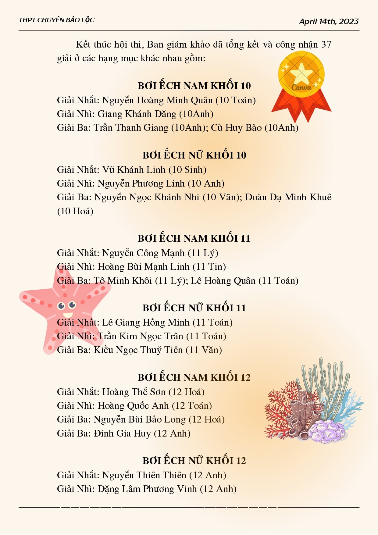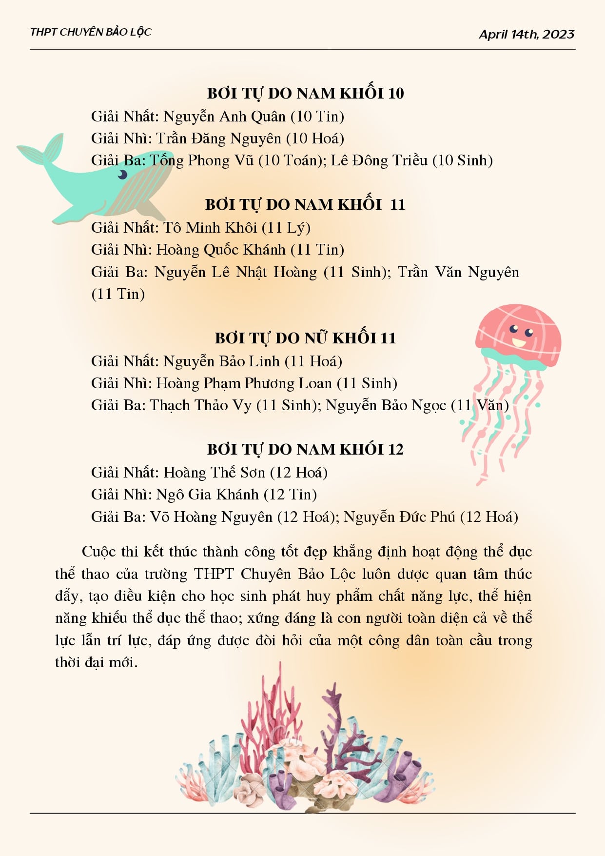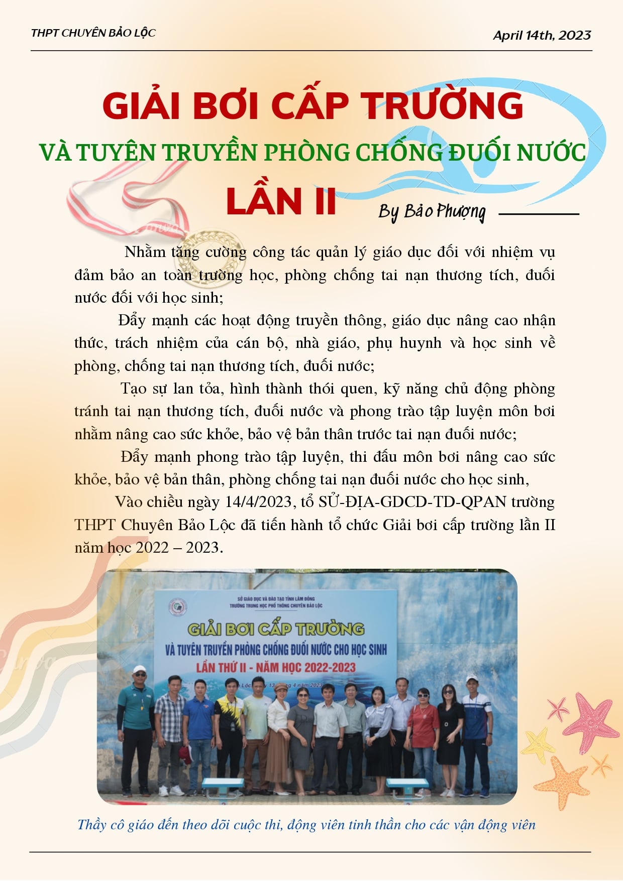 Giải bơi và tuyên truyền phòng chống đuối nước lần thứ 2 cấp trường năm học 2022 - 2023