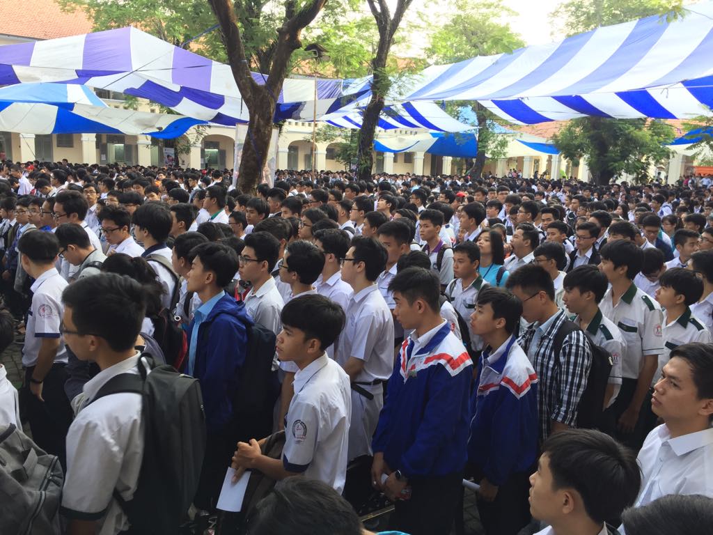 Học sinh các đoàn tham dự lễ khai mạc và chuẩn bị vào phòng thi