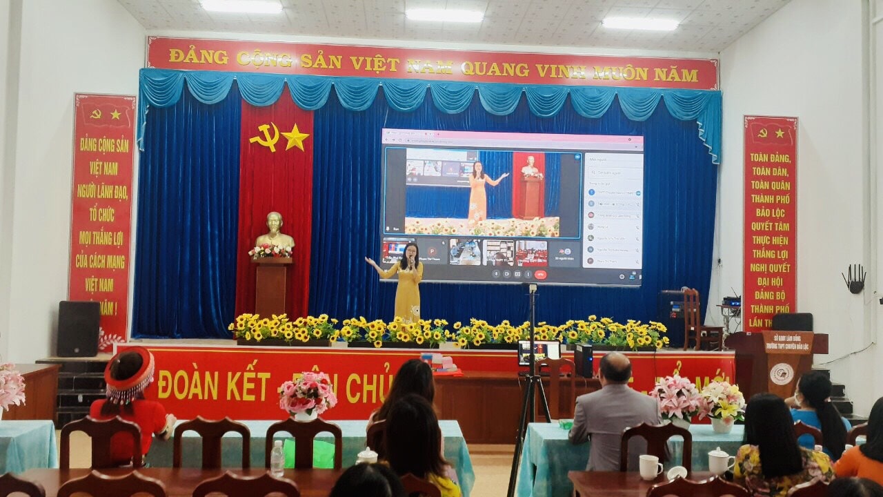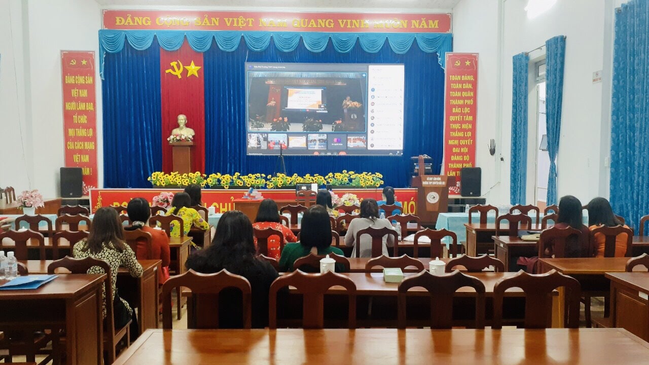 Thực hiện KH 05/KH BNC, CV 103/CĐN của Công đoàn ngành Giáo dục Lâm Đồng về việc tổ chức Hội thảo chào mừng ngày Phụ nữ Việt Nam 20/10. Chiều ngày 16/10/2021, tại Trường THPT Chuyên Bảo Lộc đã diễn ra Hội thảo với sự tham gia của Chủ tịch và Trưởng Ban nữ công CĐCS các trường THPT trên địa bàn thành phố Bảo Lộc cùng với đồng chí Vũ Thị Ngọc Thủy-UV BTV LĐLĐ thành phố Bảo Lộc đã tập trung về điểm cầu trường THPT chuyên Bảo Lộc tham dự Hội thảo.