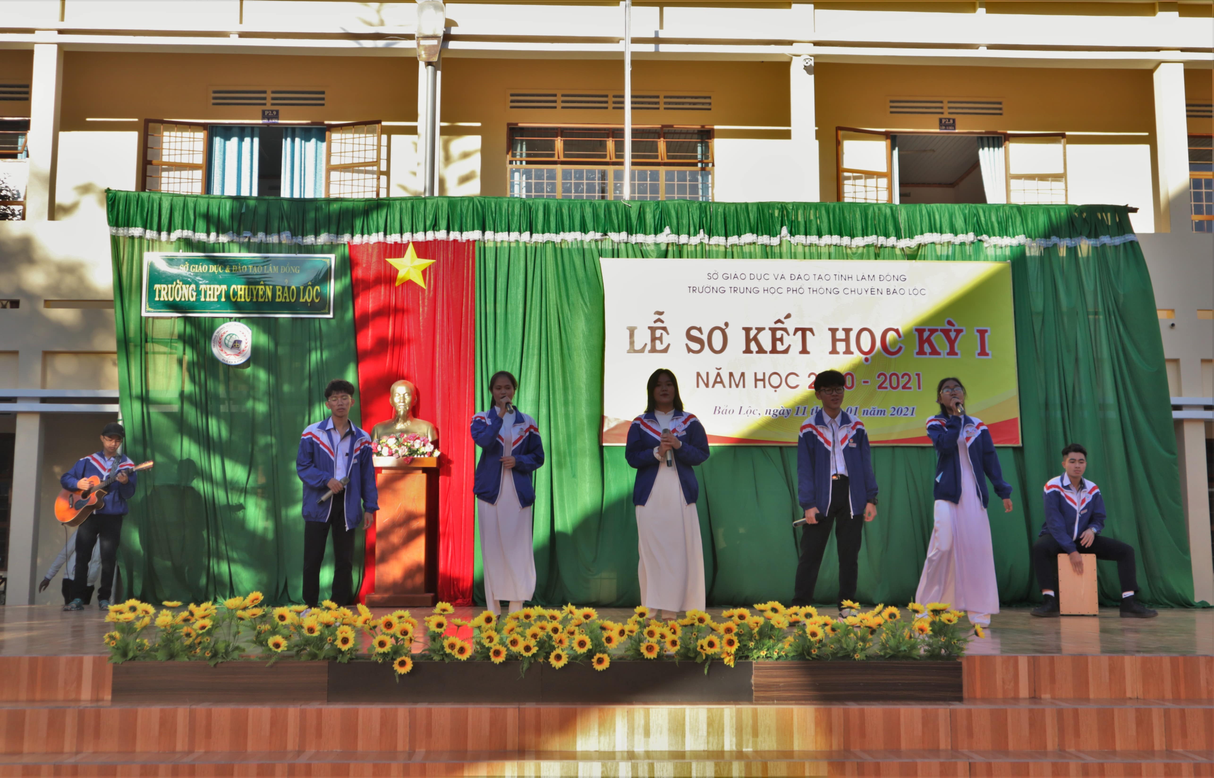 Sáng ngày 11/01/2021, trường THPT Chuyên Bảo Lộc long trọng tổ chức Lễ sơ kết Học kỳ I năm học 2020 – 2021. Tham dự buổi lễ có ông Lê Văn Thịnh – Ban thường trực Hội CMHS, thầy Hoàng Tuấn Anh – Bí thư Chi bộ, Hiệu trưởng nhà trường cùng tập thể cán bộ, giáo viên, nhân viên và 660 học sinh. Tại buổi lễ, thay mặt lãnh đạo nhà trường cô Phùng Thị Phương Lan – Phó hiệu trưởng nhà trường đã thông qua báo cáo sơ kết học kỳ I và thầy Vũ Hiền Nhân thông qua các quyết định khen thưởng học sinh có thành tích học tập, rèn luyện, đạt thành tích cao trong các hoạt động thể dục thể thao các cuộc thi khác với kết quả như sau: