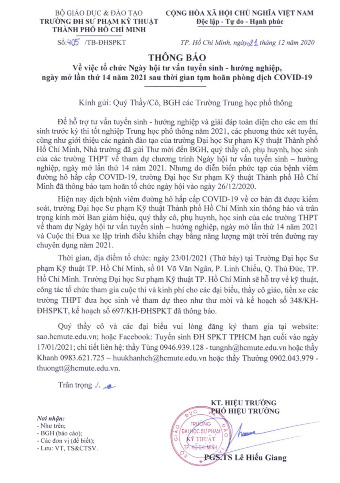 Thông báo về việc tổ chức Ngày hội tư vấn tuyển sinh - hướng nghiệp lần thứ 14 của trường ĐH SPKT Tp. Hồ Chí Minh