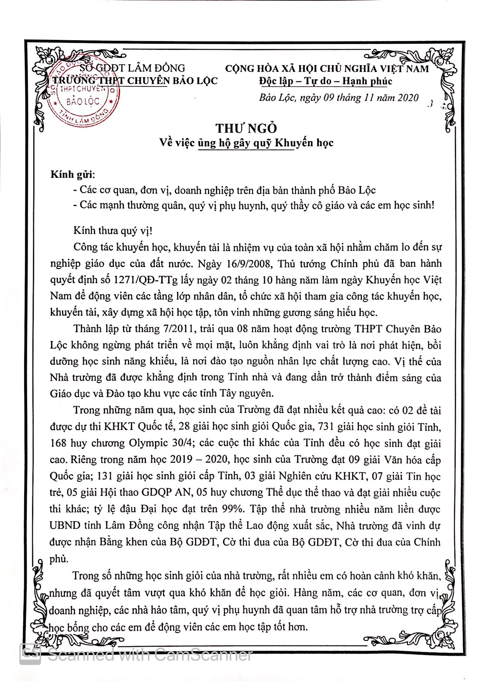 SỐ 136 THÔNG BÁO V/V CHUYỂN ĐỊA ĐIỂM TRƯỜNG THPT CHUYÊN BẢO LỘC