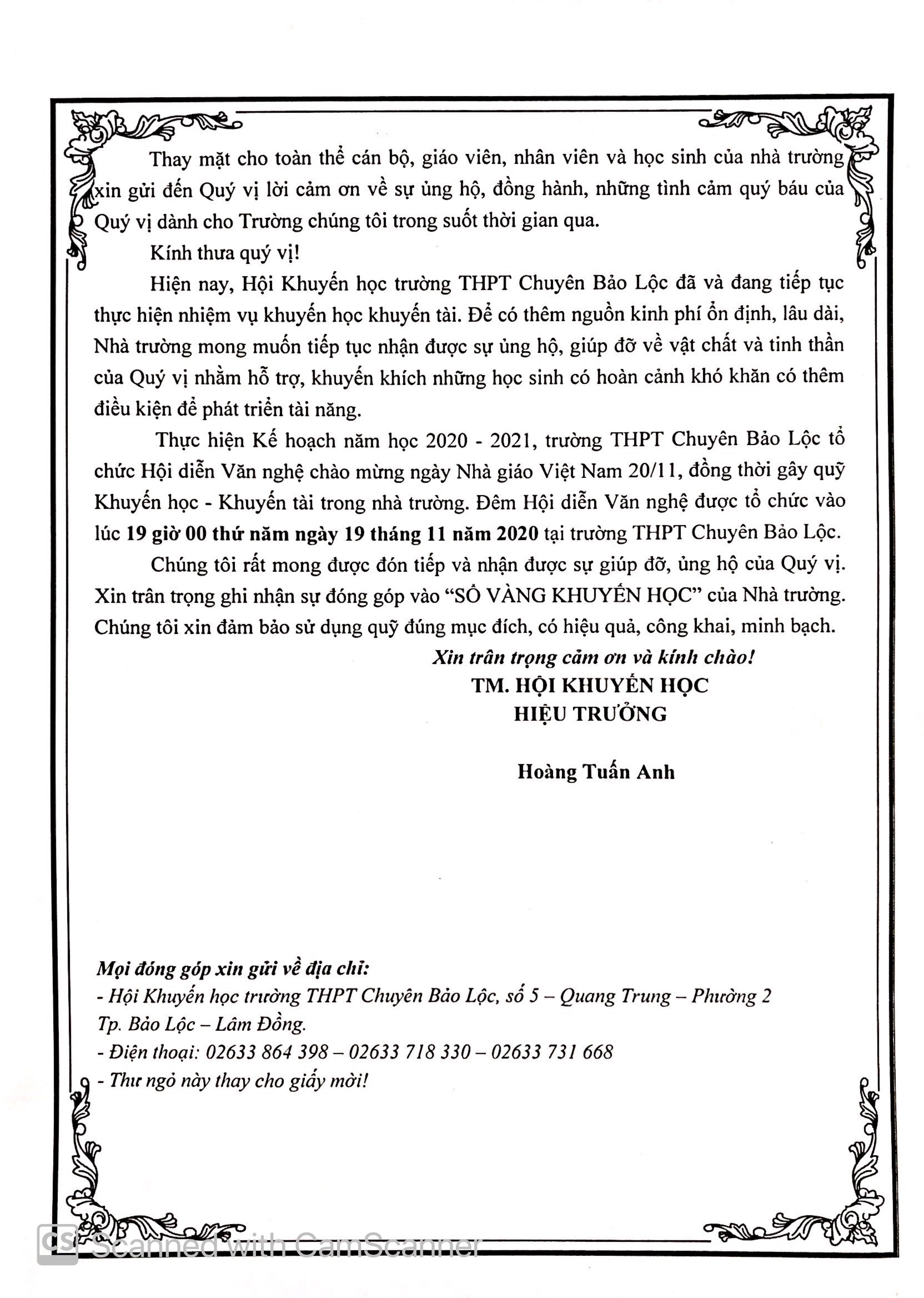 SỐ 217 - THÔNG BÁO CHUYỂN ĐỊA ĐIỂM TRƯỜNG THPT CHUYÊN BẢO LỘC