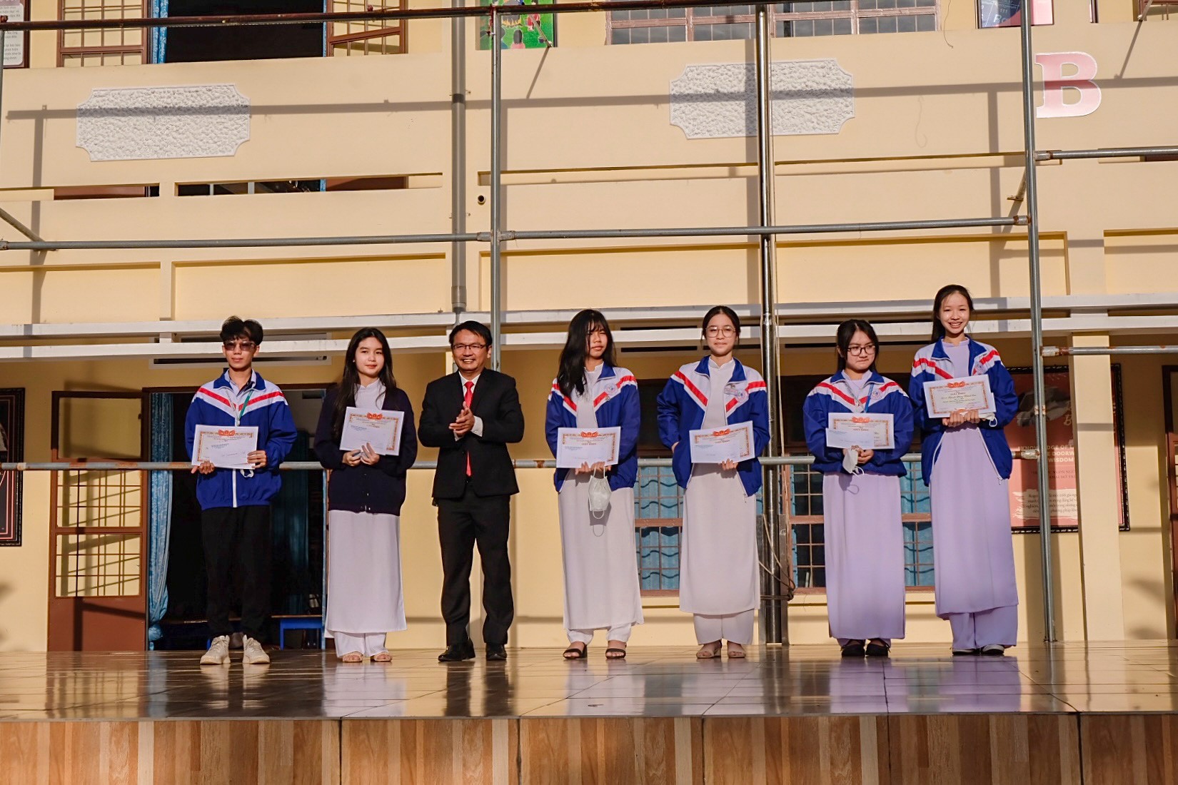 Thầy Nguyễn Vũ Minh Tú – Hiệu trưởng trao giải cho học sinh