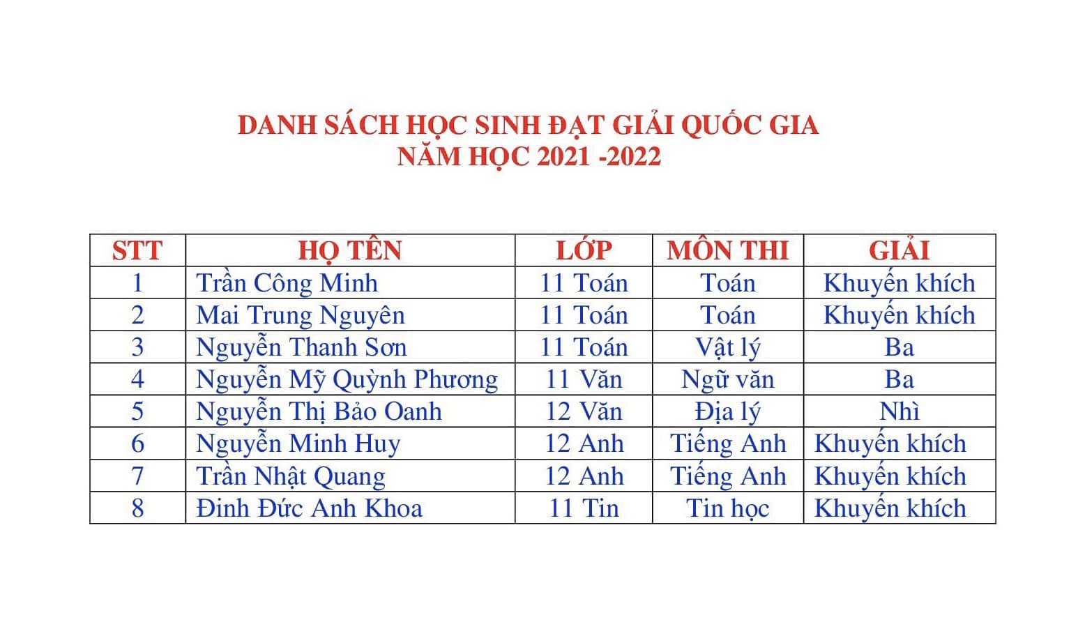 Trường THPT Chuyên Bảo Lộc đoạt 8 giải tại Kỳ thi chọn học sinh giỏi quốc gia THPT năm học 2021 - 2022
