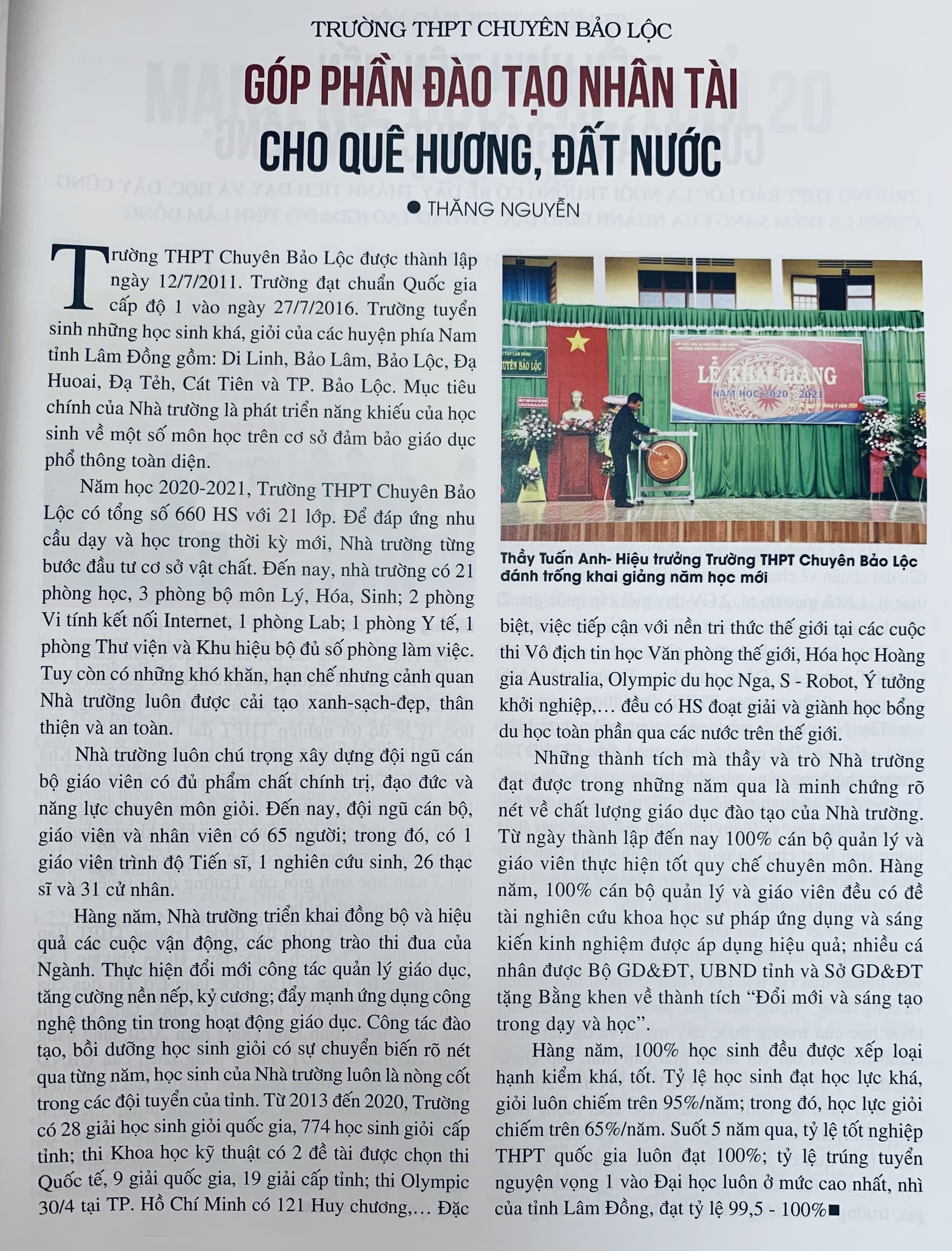 Trường THPT Chuyên Bảo Lộc góp phần đào tạo nhân tài cho quê hương, đất nước