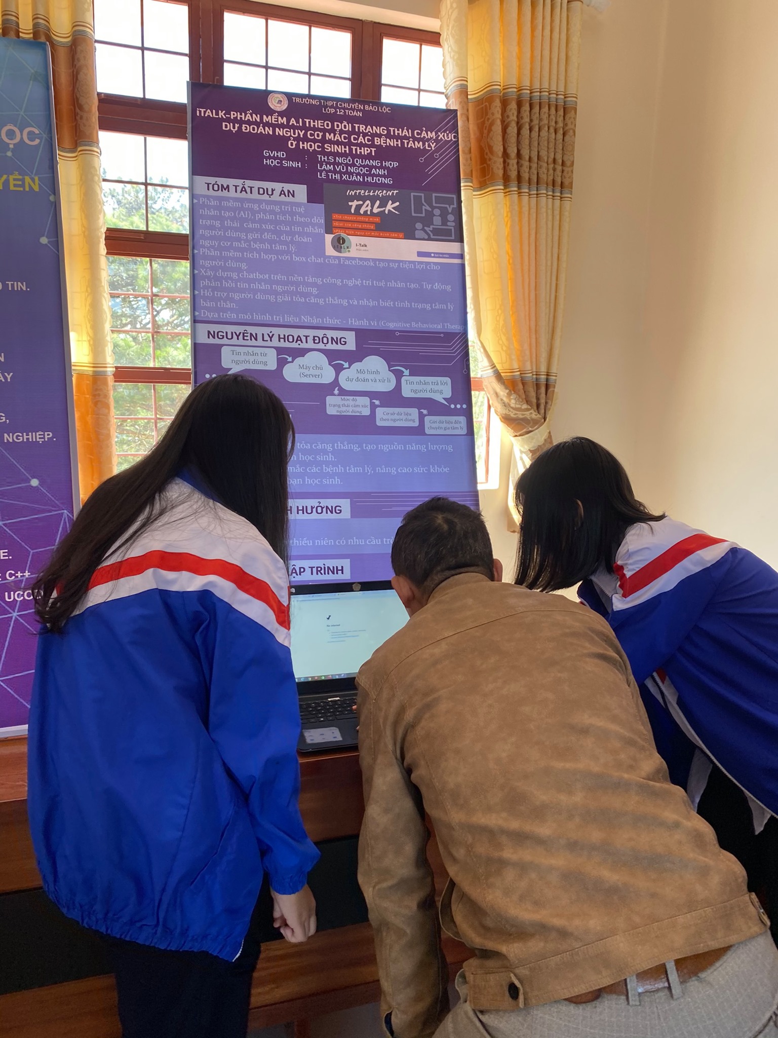 Ngày 27-28/01/2021 trường THPT Chuyên Bảo Lộc tham gia triển lãm với 3 sản phẩm 1. iTALK - Phần mền ứng dụng A.I theo dõi trạng thái cảm xúc dự đoán nguy cơ mắc các bệnh tâm lý ở học sinh THPT (Sản phẩm đạt giải nhất trong kì thi THPT vừa qua) 2. Robot tự hành tránh vật cản 3. Robot vận chuyển hàng hoá