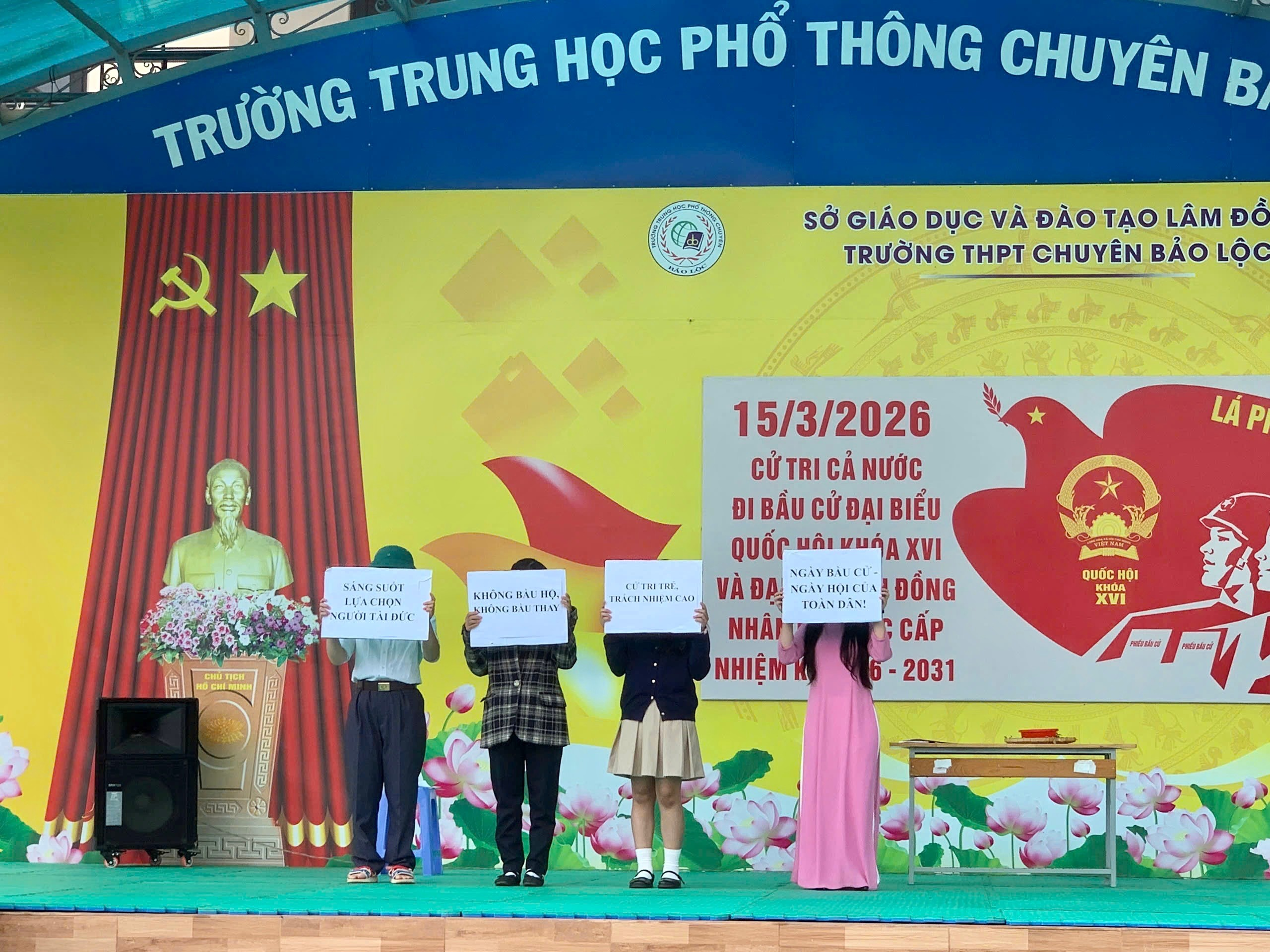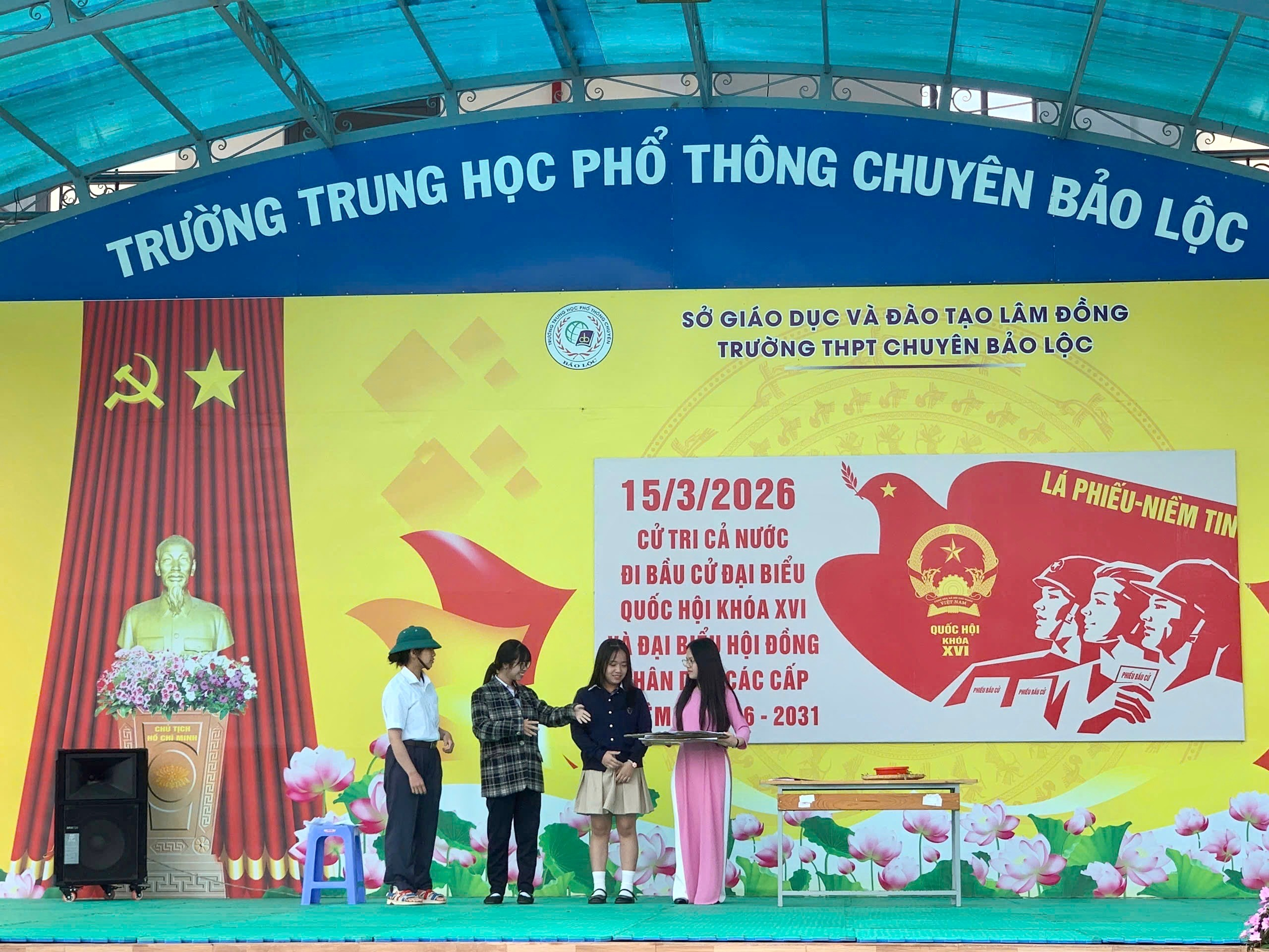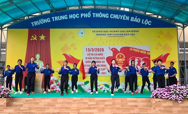 Sáng ngày 09/3/2026, trường THPT Chuyên Bảo Lộc đã tổ chức buổi sinh hoạt dưới cờ với chủ đề: “Ngày hội non sông - Trách nhiệm trẻ” nhằm tuyên truyền, phổ biến những nội dung cơ bản về cuộc bầu cử Đại biểu Quốc hội khóa XVI, Đại biểu Hội đồng Nhân dân các cấp nhiệm kỳ 2026–2031.