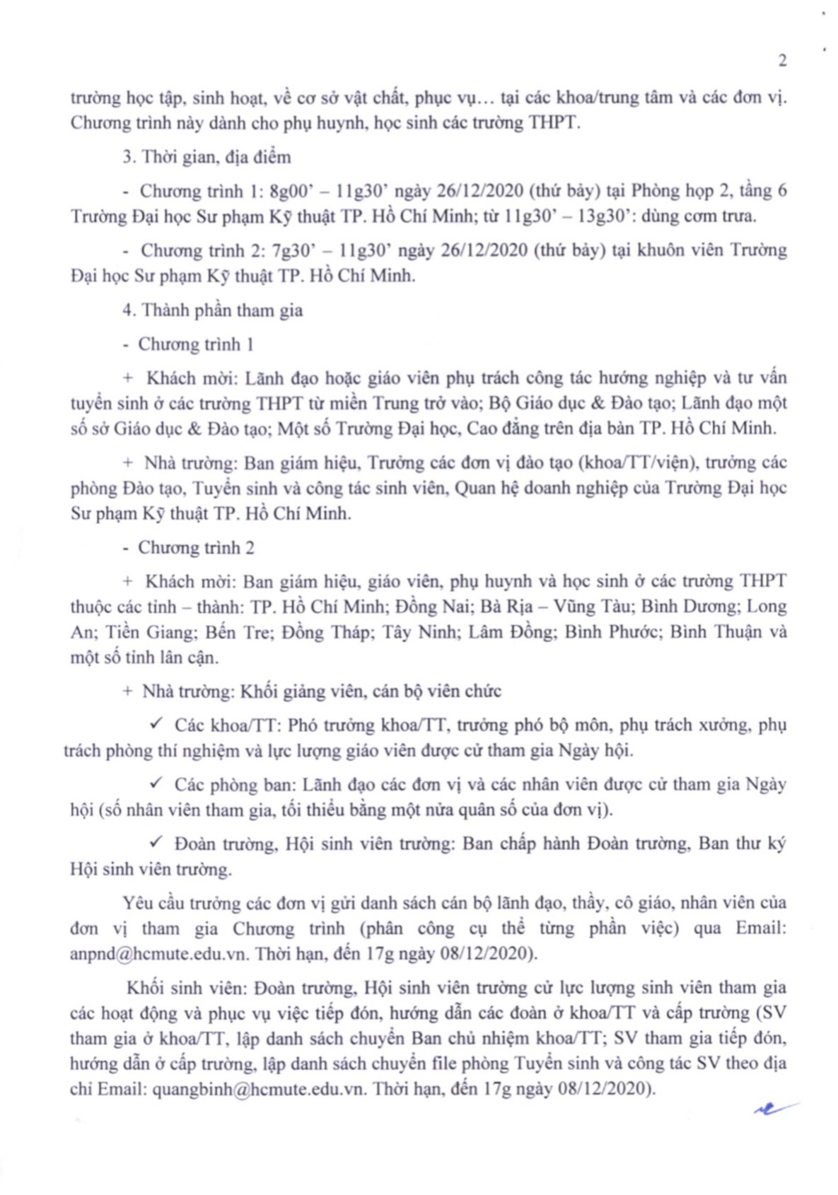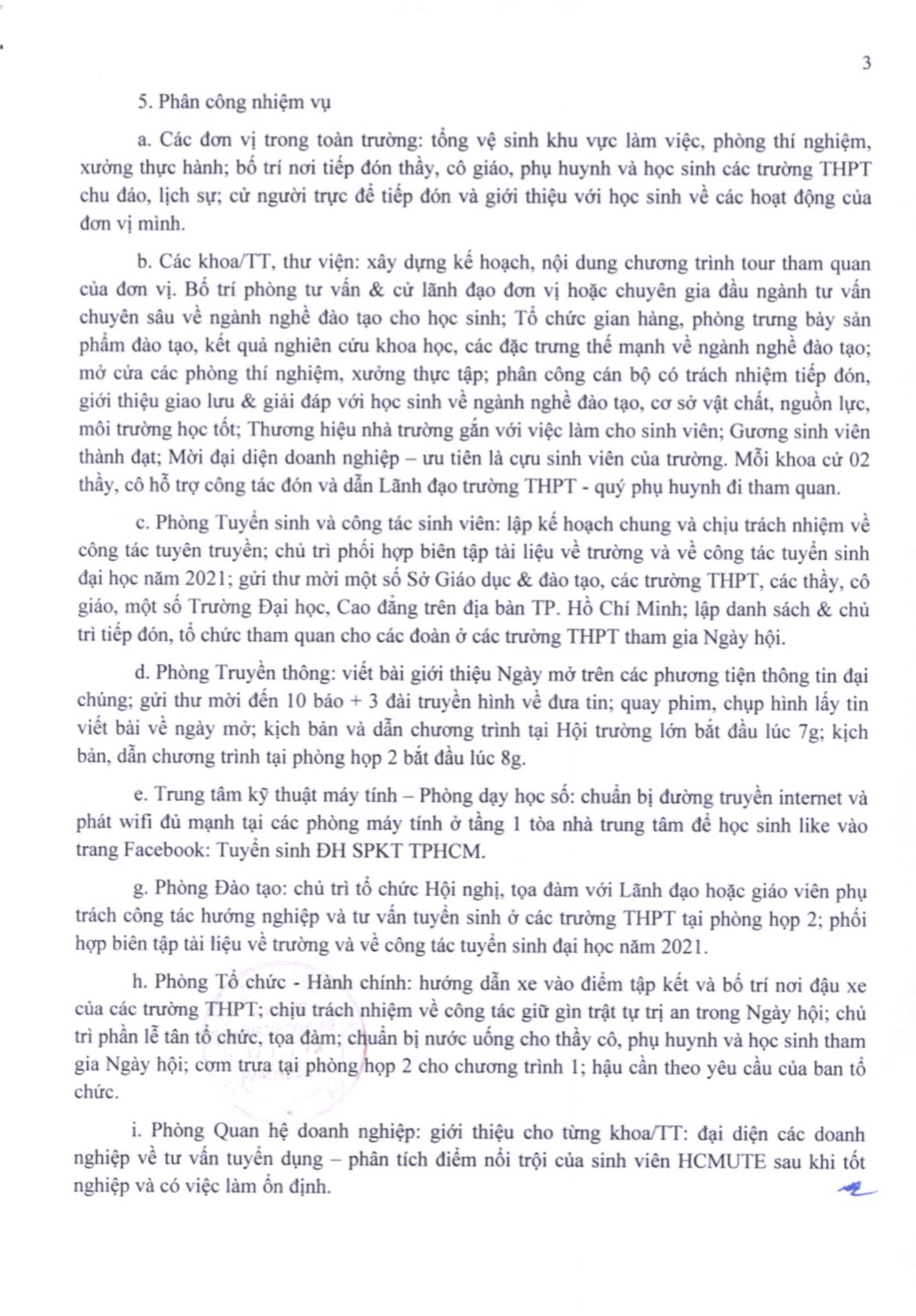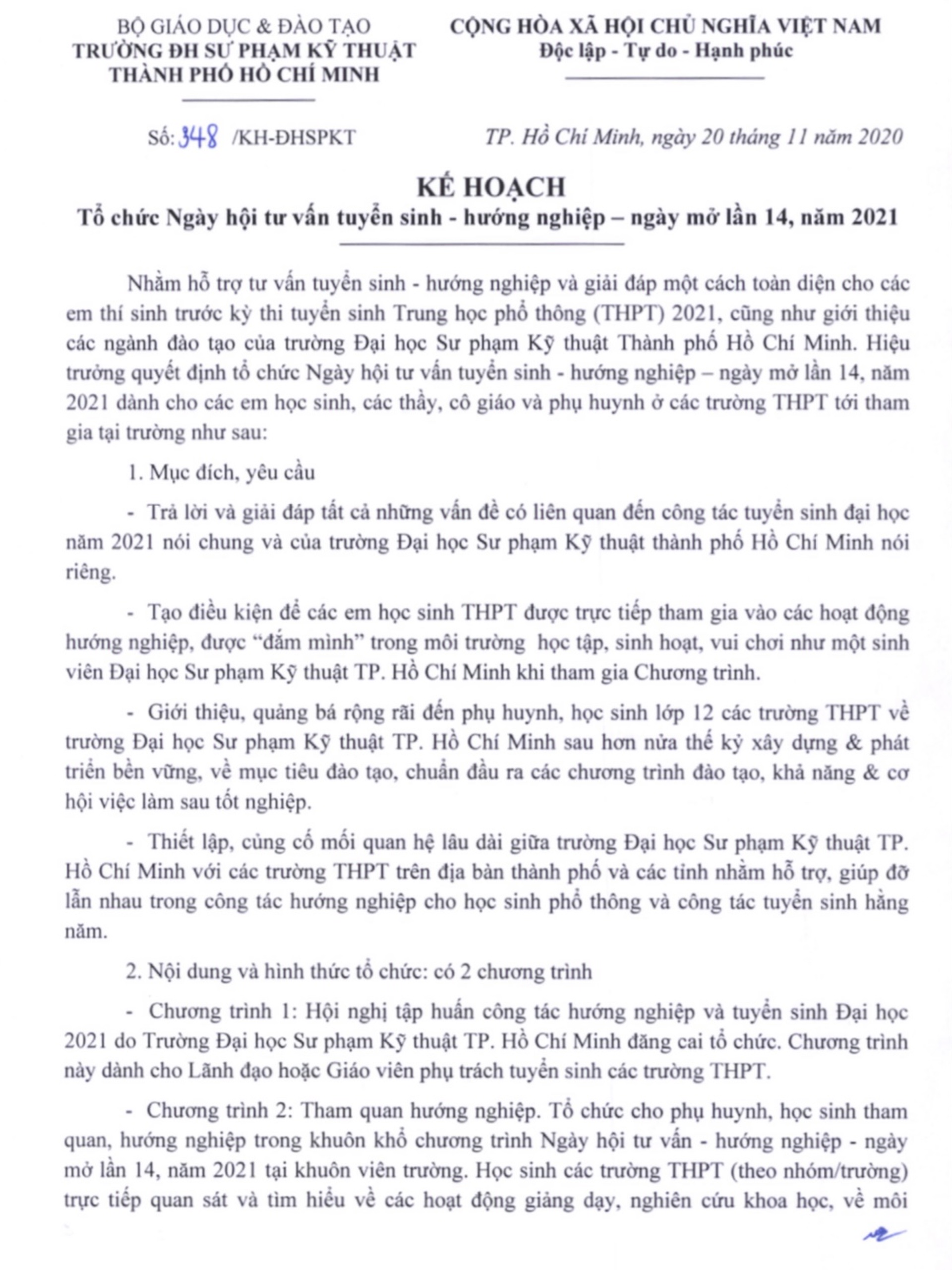 Kế hoạch tổ chức Ngày hội tư vấn tuyển sinh - hướng nghiệp - ngày mở lần 14, năm 2021 của ĐH SPKT TP. Hồ Chí Minh