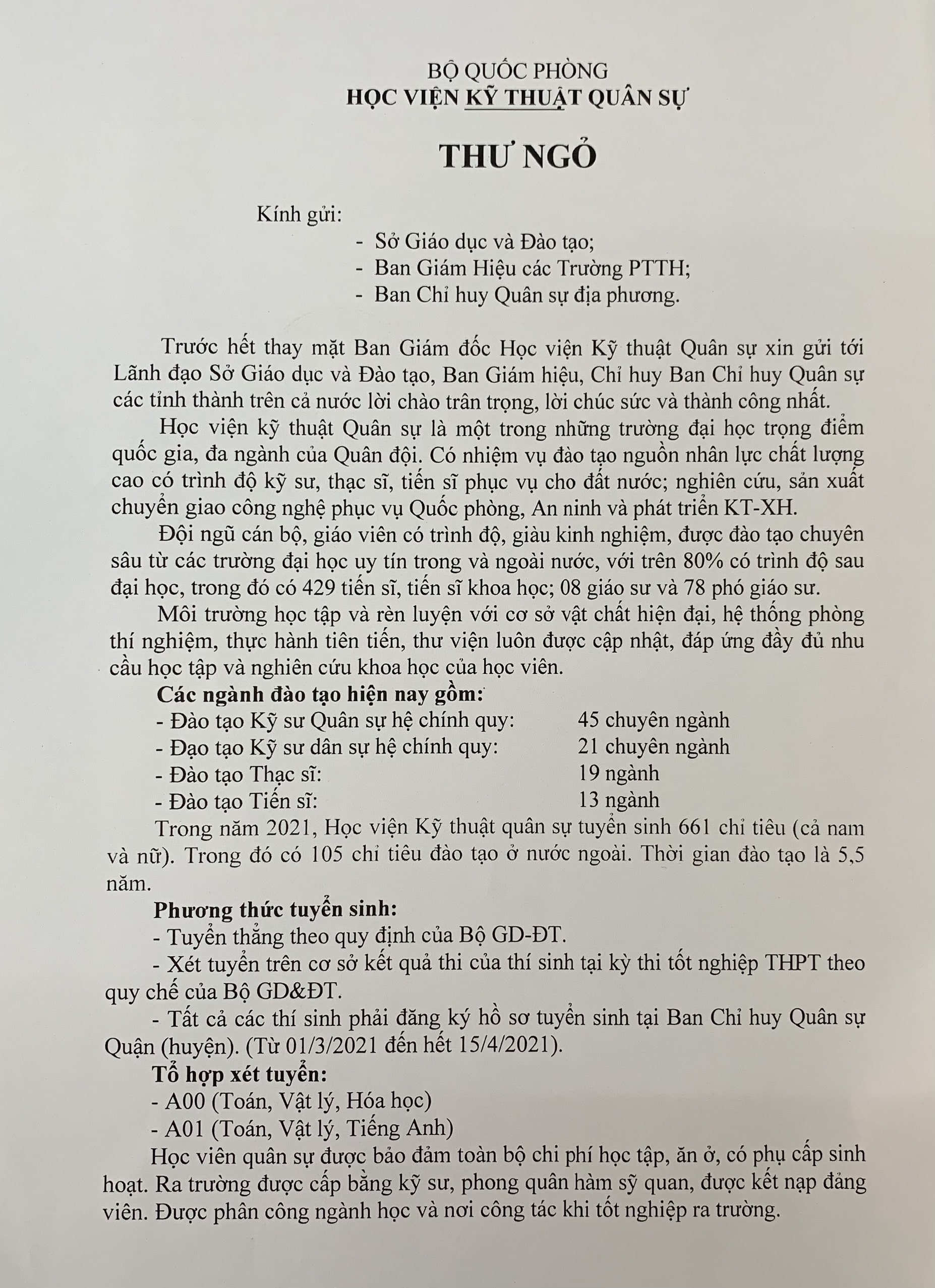 Thông tin tuyển sinh Học viện kỹ thuật Quân sự năm 2021