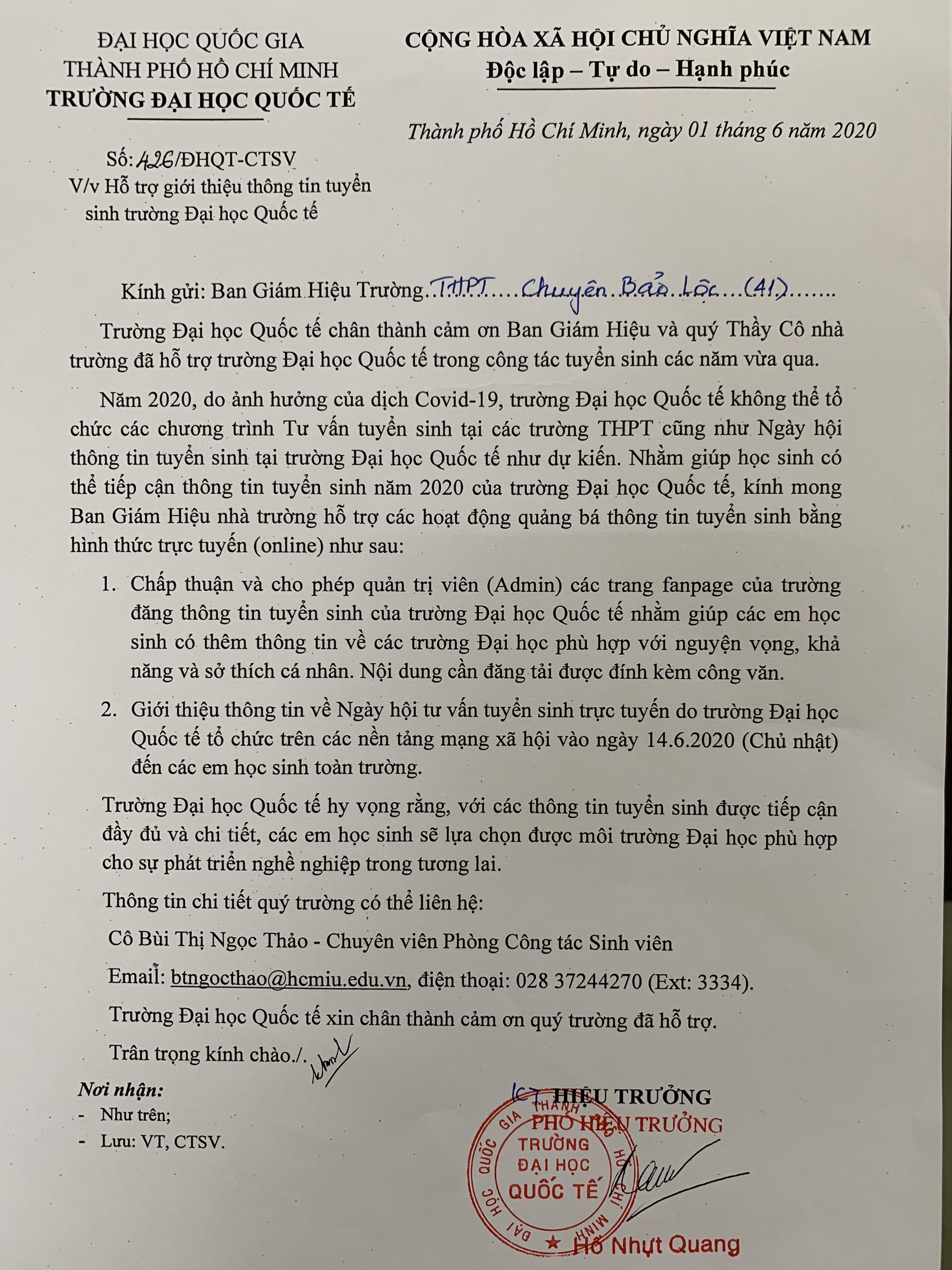 Tư vấn tuyển sinh trực tuyến ngày 14/6/2020